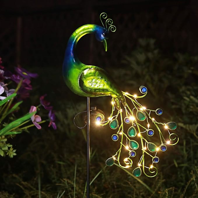 solar garden lights metal peacock garden decor waterproof peacock solar stake for outdoor patio yard decorations