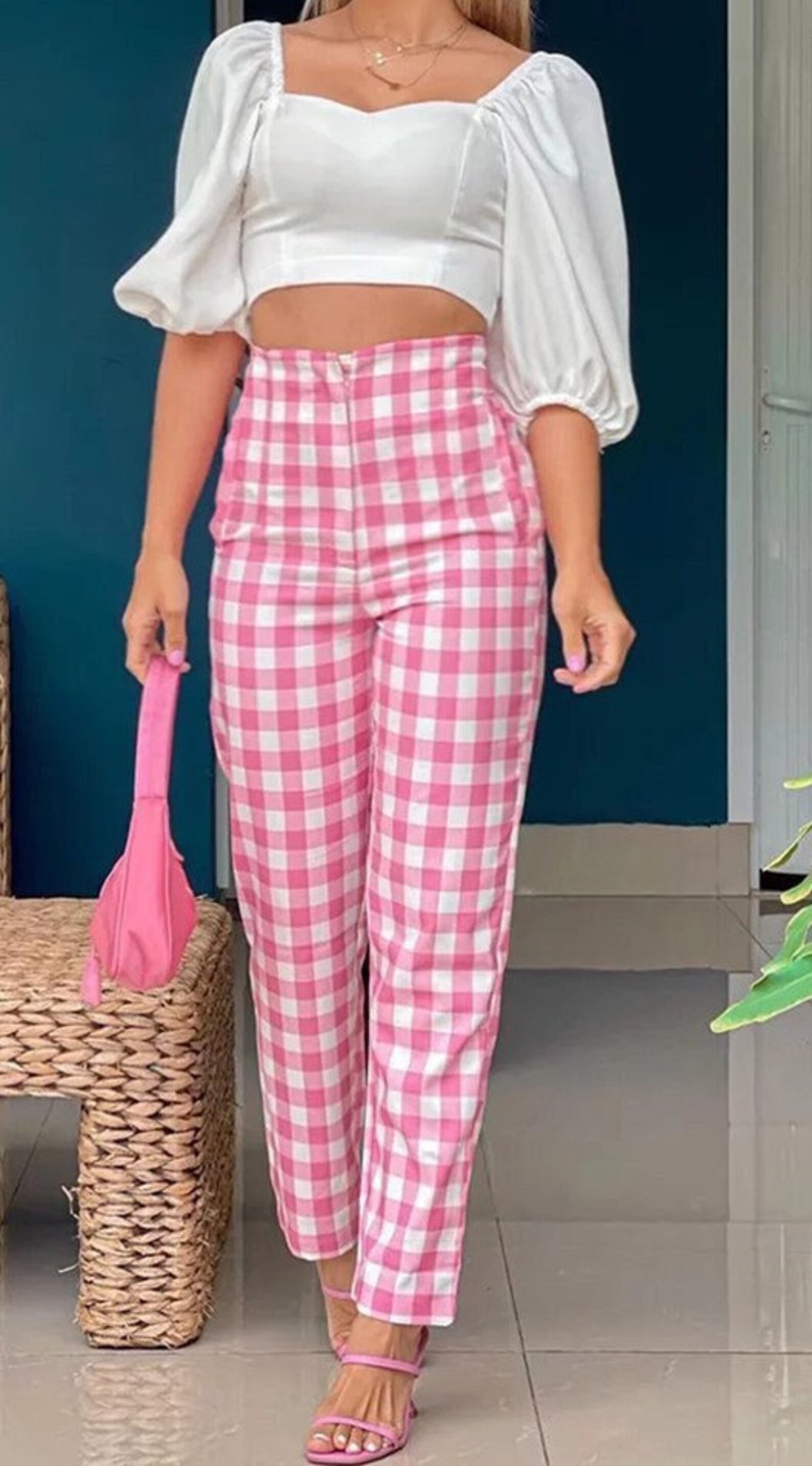 pink tartan plaid suitcases | luggage | hard-shell suitcases | built-in lock | 360 swivel wheels | adjustable handle