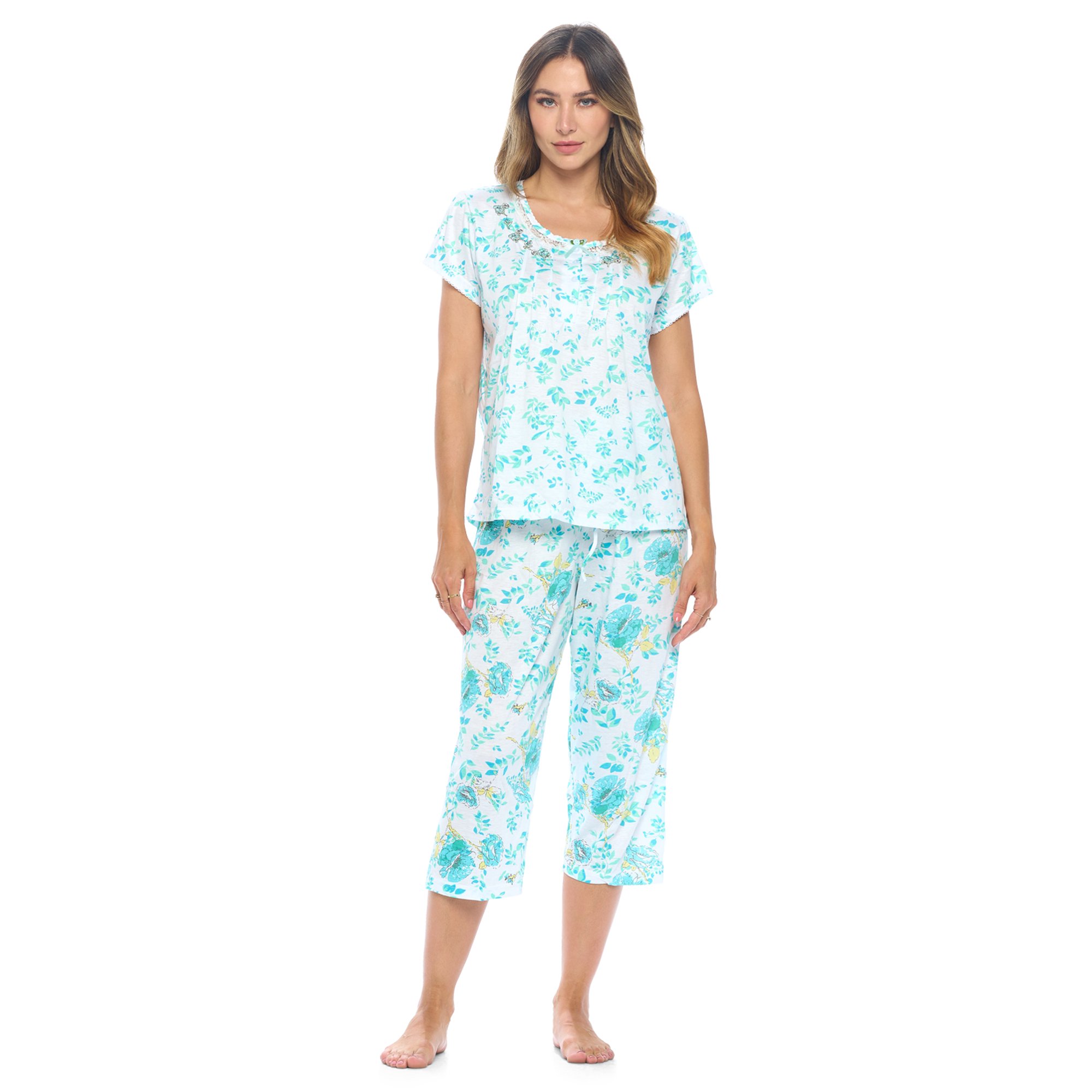women’s 2pcs pajama set short sleeve v neck t-shirt capri cropped pants sleepwear lounge suits