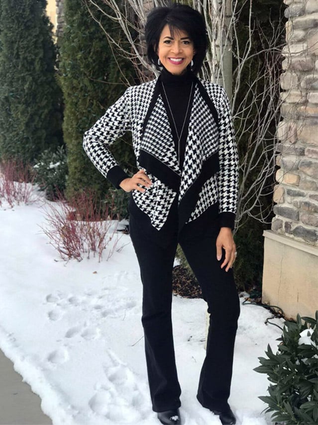 With these Type 4/3 women, you’ll notice a more edgy or rich look to their styles. This shows up with more angles, asymmetry, and dynamic patterns.